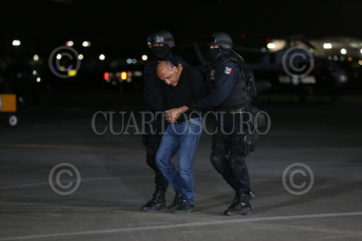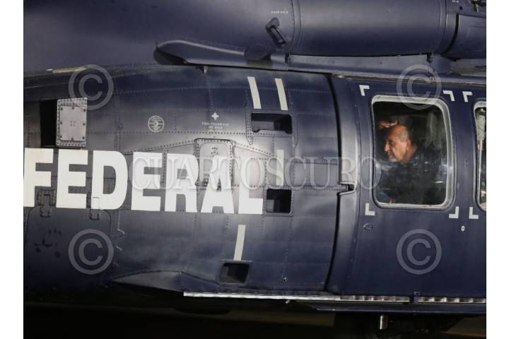 MÉXICO, 27FEBRERO2015.- Personal de la PGR, PF y del gabinete de seguridad trasladaron a Servando Martinez Gomez alias La Tuta y Flavio Martinez hermano de la Tuta al hangar de la PGR donde fue llevado a un penal federal de máxima seguridad. FOTO: SAÚL LÓPEZ /CUARTOSCURO.COM