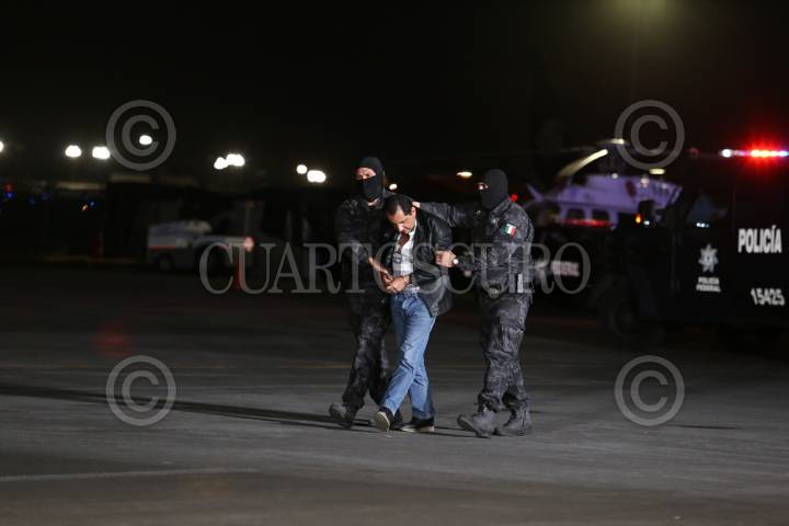MÉXICO, 27FEBRERO2015.- Personal de la PGR, PF y del gabinete de seguridad trasladaron a Flavio Martinez hermano de la Tuta al hangar de la PGR donde fue llevado a un penal federal de máxima seguridad. FOTO: SAÚL LÓPEZ /CUARTOSCURO.COM