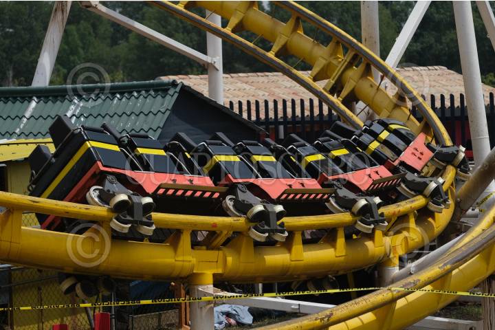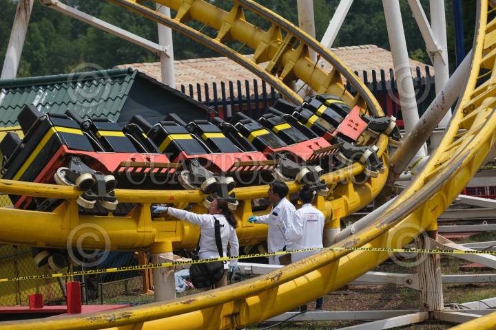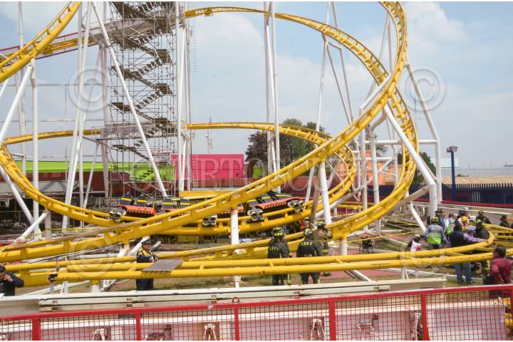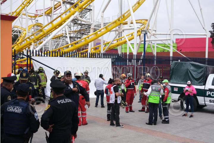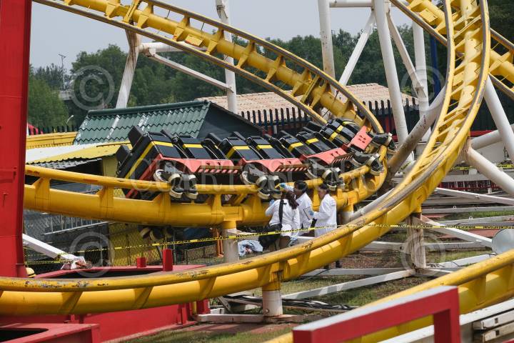CIUDAD DE MÉXICO, 28SEPTIEMBRE2019.- El descarrilamiento del juego mecánico de nombre "La Quinera" que se encuentra en la Feria de Chapultepec dejó como saldo dos personas muertas, uno de aproximadamente 27 y el otro de 32 años, además dos personas lesionadas las cuales fueron trasladas a un nosocomio para su atención. El último carro del juego se descarrilo y cayó al vacío causando la muerte de sus tripulantes FOTO: ARMANDO MONROY /CUARTOSCURO.COM