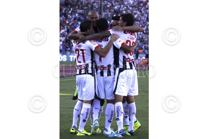 MONTERREY, NUEVO LEÓN, 23AGOSTO2014.- Jugadores del equipo de los Rayados festejan el gol de Dorlan Pavón, en el estadio tecnológico, partido correspondiente a la jornada 6 de la Apertura 2014 de la Liga MX. FOTO: GABRIELA PÉREZ MONTIEL /CUARTOSCURO.COM