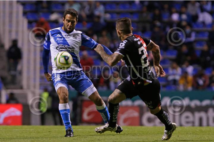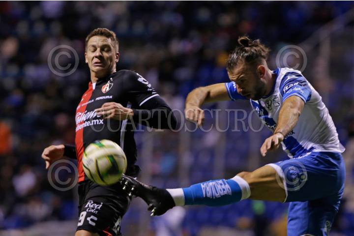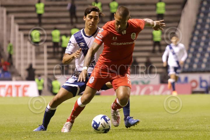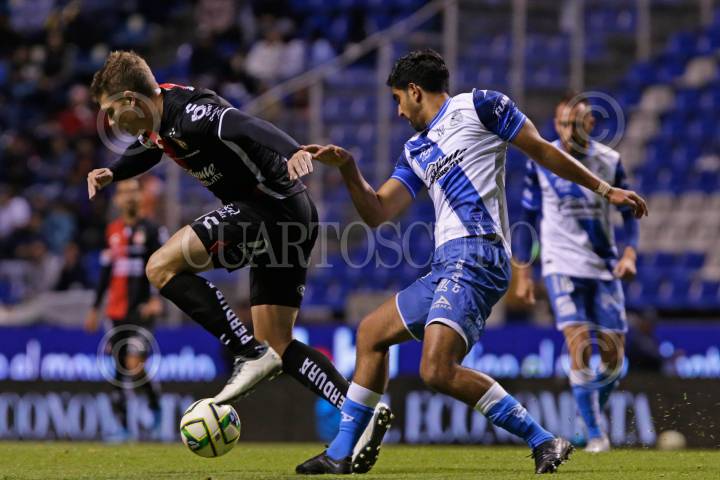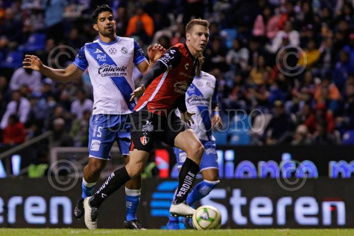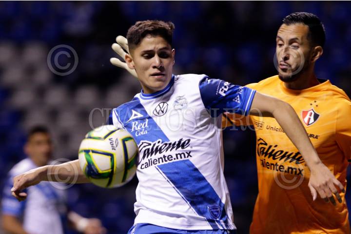 Pablo González durante el partido entre el Club Puebla y los Rojinegros del Atlas correspondiente a la jornada 12 del torneo Clausura 2023 de la Liga BBVA MX, celebrado en el estadio Cuauhtémoc.