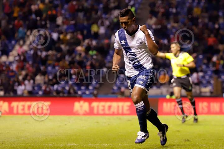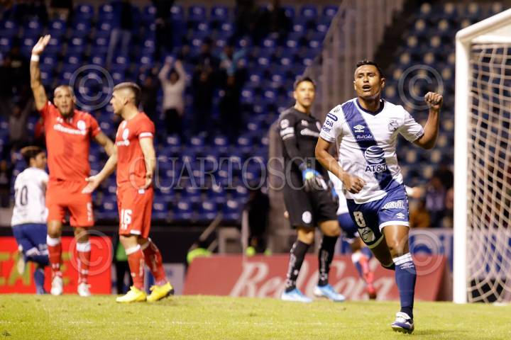 Ángel Zaldivar en festejo de gol durante el partido de la jornada 7 del torneo Clausura 2020 de la Liga BBVA MX, entre el Club Puebla y los Diablos Rojos del Toluca