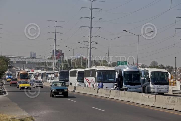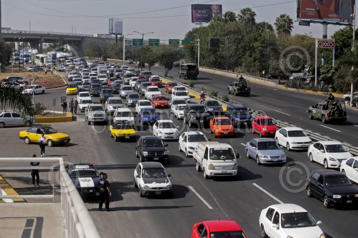GUADALAJARA, JALISCO. 03ENERO2017.- Transportistas de transporte foráneo privado, realizaron cierres en la salida de la autopista Guadalajara-Zapotlanejo, después una marcha lenta hasta la caseta de cobro de la Joya lo que ocasiono caos vial por toda la autopista, esto en repudio al presidente de la republica, Enrique Peña Nieto por el alza de los combustibles en México. FOTO : FERNANDO CARRANZA GARCIA / CUARTOSCURO.COM