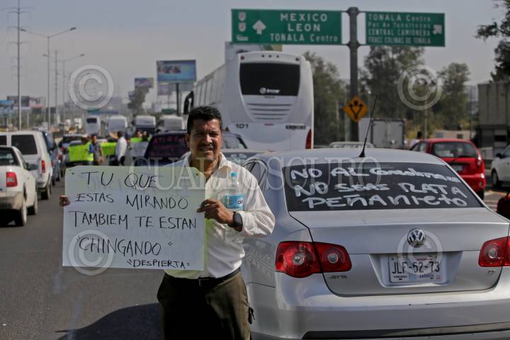 GUADALAJARA, JALISCO. 03ENERO2017.- Transportistas y vecinos del poblado de Zapotlanejo mantienen tomada la caseta de cobro de La Joya, de la autopista Guadalajara-Zapotlanejo, esto en repudio al presidente de la republica, Enrique Peña Nieto por el alza de los combustibles en México, hasta el momento la protesta se realiza en calma y los cobros de peaje a los automovilistas no se están realizando. FOTO : FERNANDO CARRANZA GARCIA / CUARTOSCURO.COM