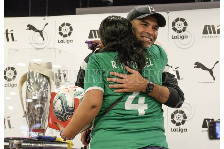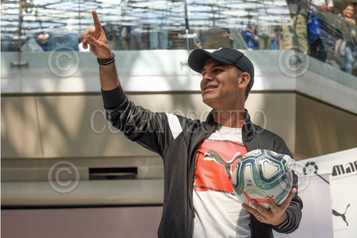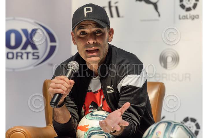 CIUDAD DE MÉXICO, 21SEPTIEMBRE2019.- Rafael Márquez, exfutbolista mexicano, ofreció conferencia de prensa para realizar la presentación del balón oficial de “La Liga” perteneciente al futbol español, además de firmar autógrafos y convivir con sus fanáticos, ésto en centro comercial del sur de la capital. FOTO: MARIO JASSO /CUARTOSCURO.COM
