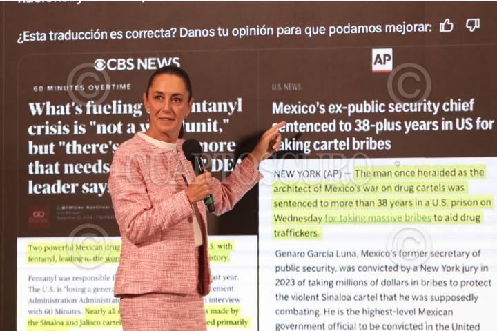 CIUDAD DE MÉXICO, 04FEBRERO2025.- La presidenta Claudia Sheinbaum señala que la prueba presentada por la Casa Blanca sobre la supuesta colusión del gobierno con el narcotráfico está relacionada con el caso de García Luna. FOTO: GUSTAVO ALBERTO /CUARTOSCURO