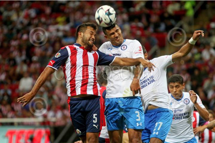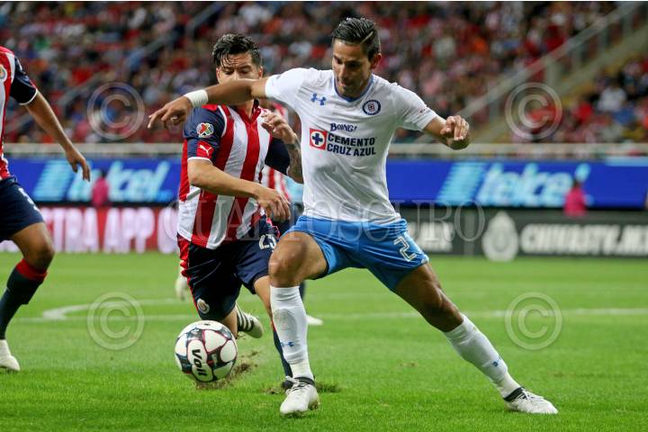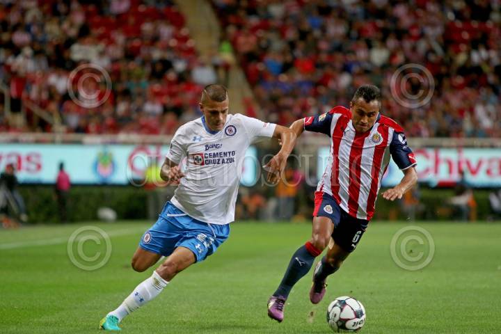 ZAPOPAN, JALISCO. 29OCTUBRE2016.- Joao Rojas, jugador de Cruz Azul disputa un balón a Michael Pérez de Chivas, en partido correspondiente a la Jornada 15 del Torneo Apertura 2016 de la Liga MX, en donde se enfrentan las Chivas de Guadalajara frente a la Maquina de Cruz Azul, en encuentro que se lleva a cabo en el Estadio Chivas. FOTO : FERNANDO CARRANZA GARCIA / CUARTOSCURO.COM
