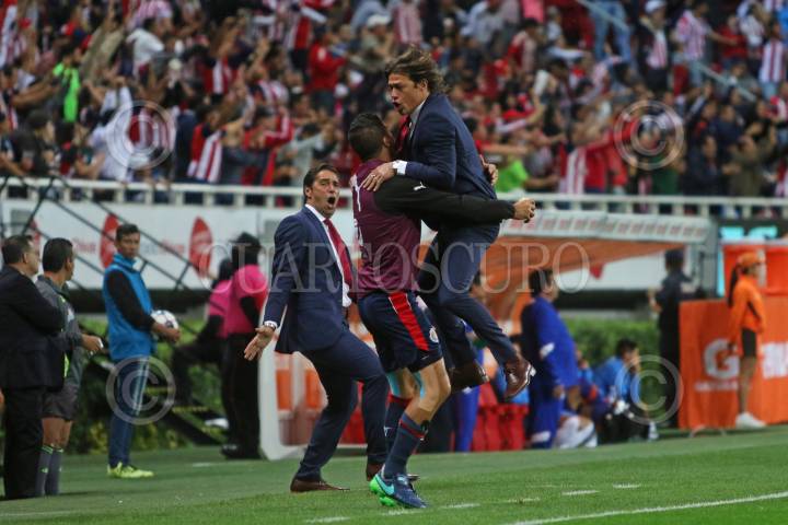 ZAPOPAN, JALISCO. 29OCTUBRE2016.- Matías Almeida, D.T. de Chivas celebra una de las anotaciones de su equipo, en partido correspondiente a la Jornada 15 del Torneo Apertura 2016 de la Liga MX, en donde se enfrentan las Chivas de Guadalajara frente a la Maquina de Cruz Azul, en encuentro que se lleva a cabo en el Estadio Chiva, hasta el momento el marcador se encuentra igualado a dos goles. FOTO : FERNANDO CARRANZA GARCIA / CUARTOSCURO.COM