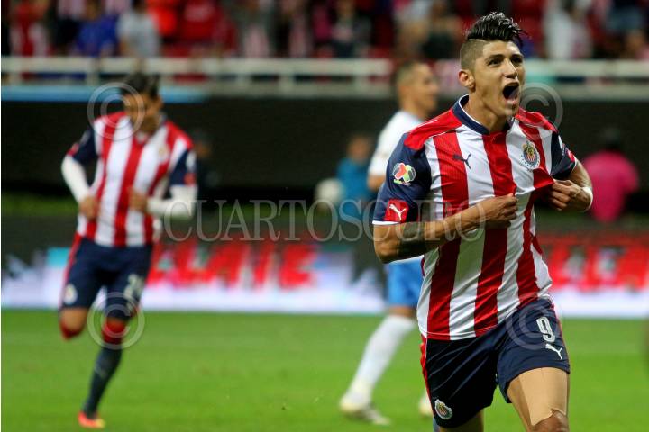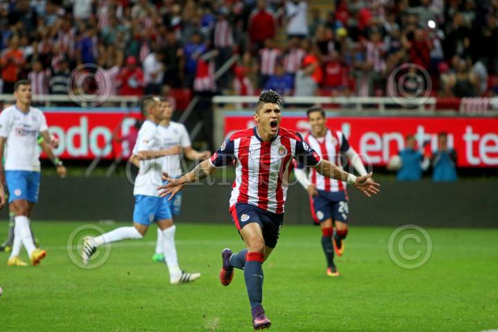 ZAPOPAN, JALISCO. 29OCTUBRE2016.- Alan Pulidor, jugador de Chivas celebra su anotación, en partido correspondiente a la Jornada 15 del Torneo Apertura 2016 de la Liga MX, en donde se enfrentan las Chivas de Guadalajara frente a la Maquina de Cruz Azul, en encuentro que se lleva a cabo en el Estadio Chiva, el marcador al final fue de 3-2 a favor del equipo local FOTO : FERNANDO CARRANZA GARCIA / CUARTOSCURO.COM