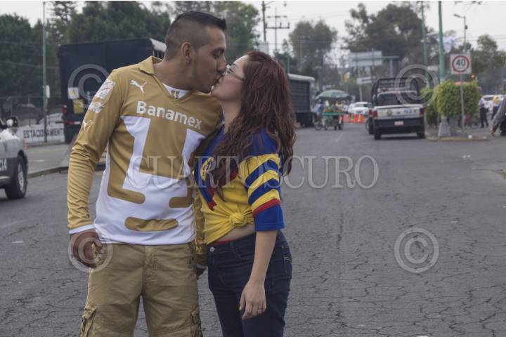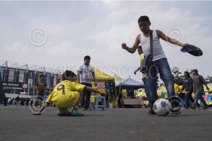 MÉXICO, DF., 22FEBRERO2014.- Esta tarde se enfrentan los universitarios Pumas contra las Águilas del América en el Estadio Azteca. Una cascarita previa al partido sobre la explanada del estadio. FOTO: MARÍA JOSÉ MARTÍNEZ /CUARTOSCURO.COM