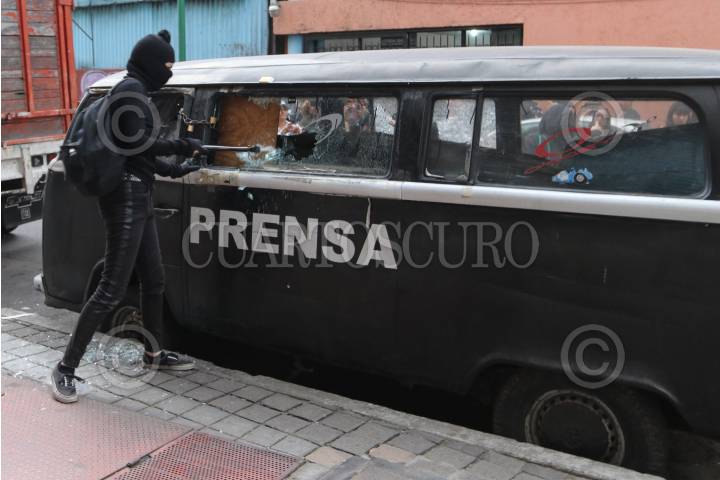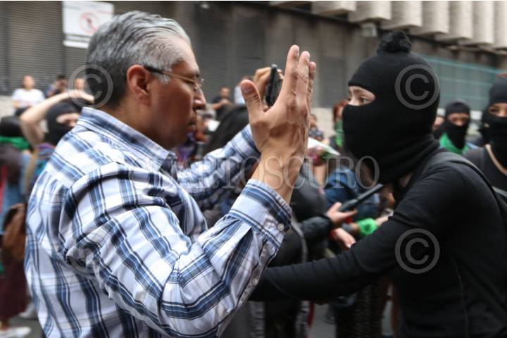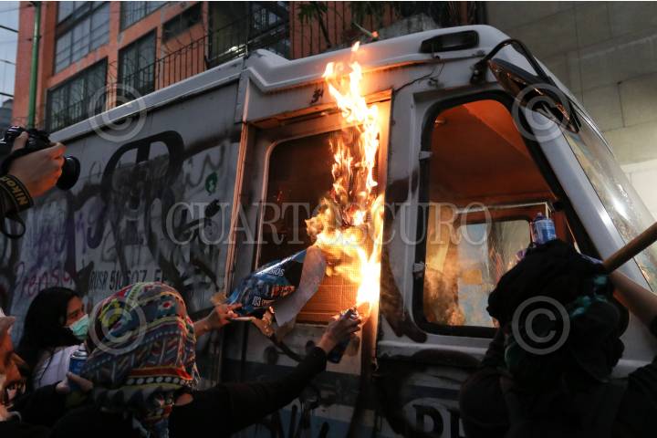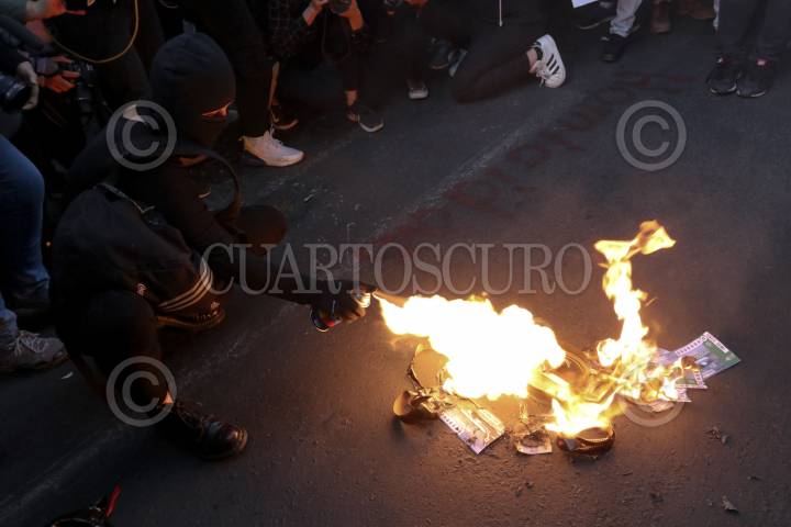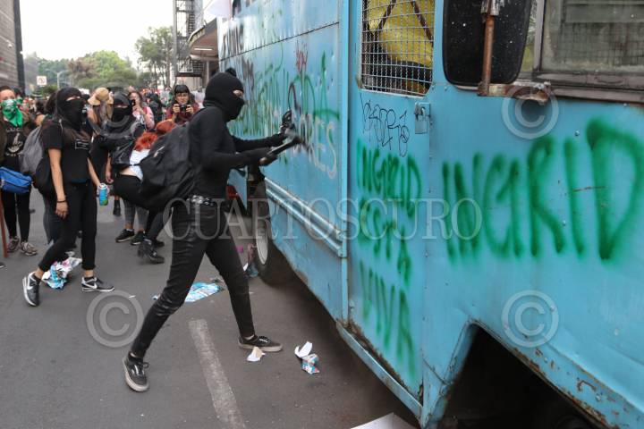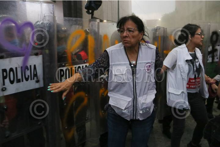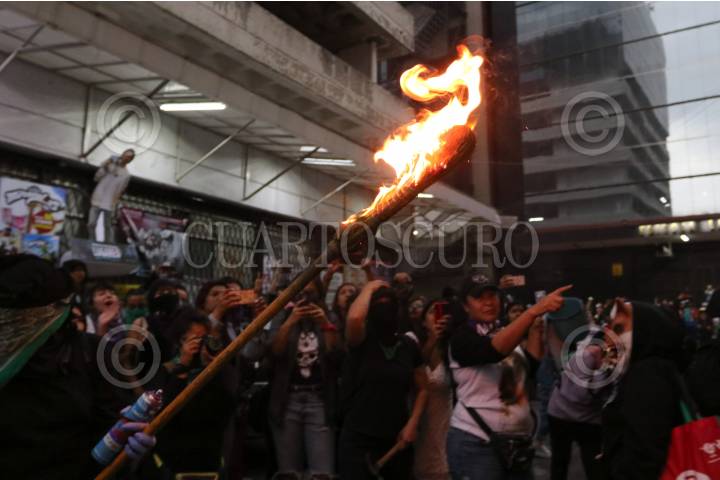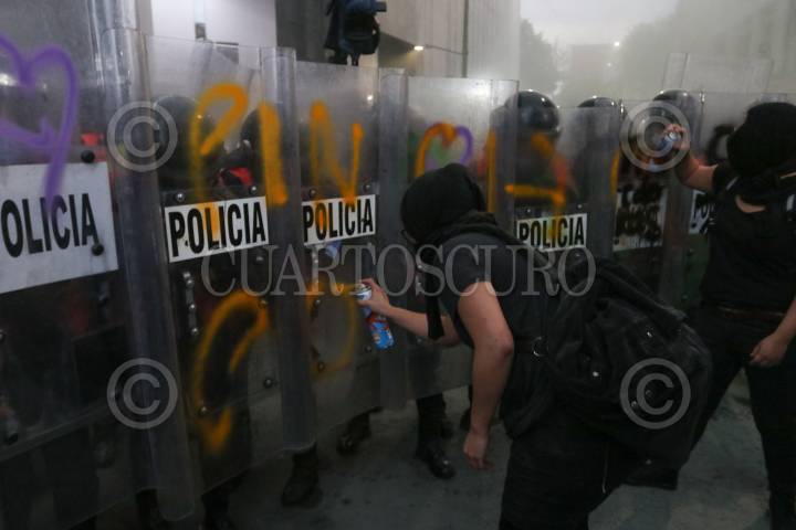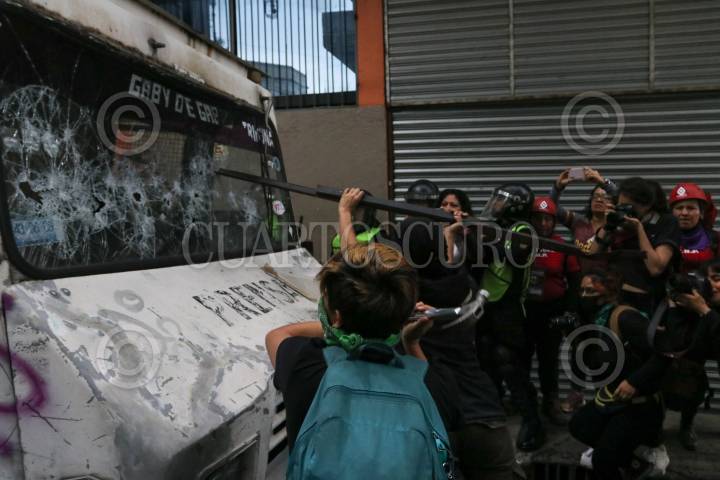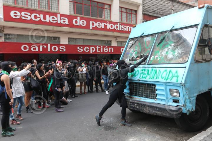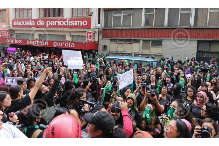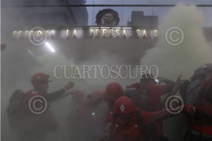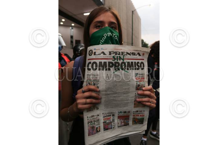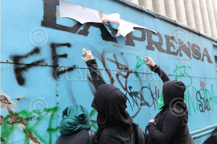 Mujeres de grupos colectivos feminista se manifestaron al exterior de las instalaciones del periódico La Prensa después de la publicación realizada por el feminicidio de Ingrid Escamilla.