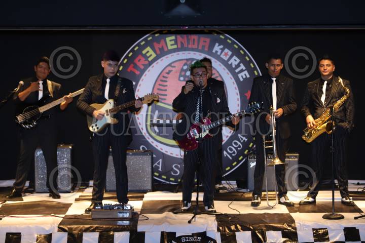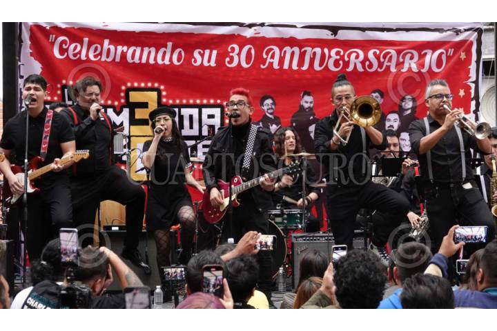 CIUDAD DE MÉXICO, 29MAYO2025.- La banda de ska La Tremenda Korte interpretó melodías en el Centro Cultural El Rule, como parte de la conferencia de prensa en donde anunciaron su próxima presentación en el Teatro Metropolitan el 5 de julio. FOTO: GRACIELA LÓPEZ/CUARTOSCURO.COM