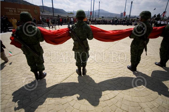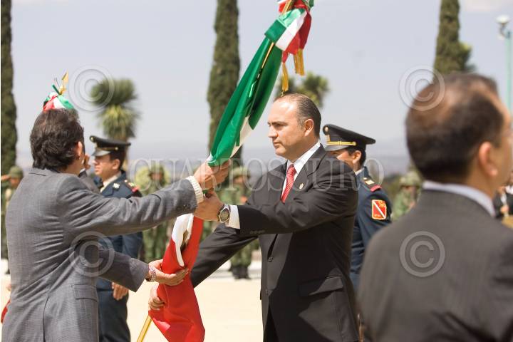 QUERÉTARO, 24FEBRERO2010.- José Calzada, gobernador del estado, durante la celebración del día de la bandera en la XVII Zona militar a cargo del Capitan Uribe Zibaja. FOTO: DEMIAN CHÁVEZ/CUARTOSCURO.COM