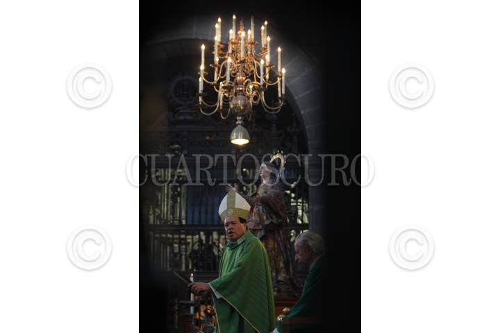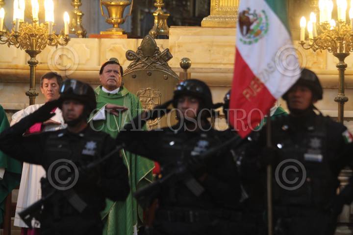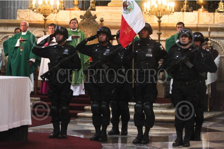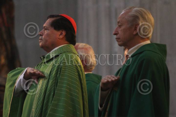 MÉXICO, D.F., 27FEBRERO2011.- El Cardenal Norberto Rivera, oficio la homilía dominical en la Catedral Metropolitana donde se realizaron los honores a la bandera con elementos de la Policía Federal. FOTO: ENRIQUE ORDÓÑEZ/CUARTOSCURO.COM