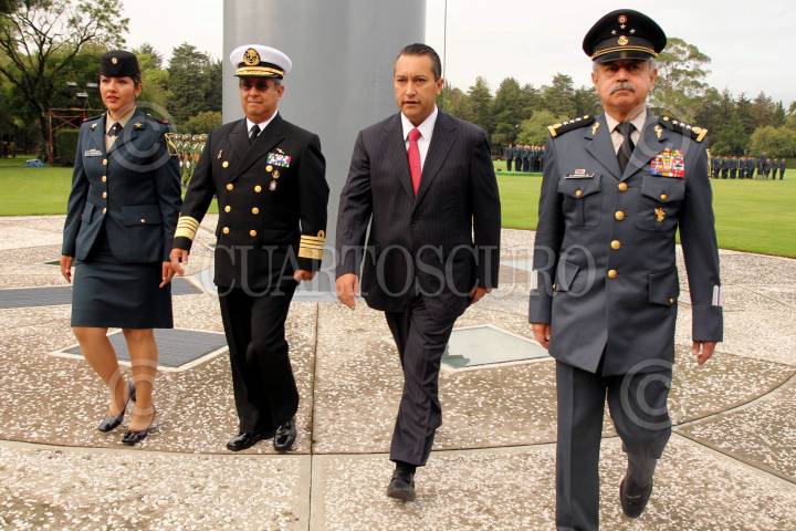 MÉXICO, D.F., 11JULIO2011.- Francisco Blake Mora, Secretario de Gobernación, durante la ceremonia de izamiento de bandera en el Campo Militar Marte, donde elementos del Ejército Mexicano rindieron honores al lábaro patrio. Esta ceremonia es presidida mensualmente en forma alterna por los titulares de las dependencias que integran la Administración Pública Federal. FOTO: CUARTOSCURO.COM