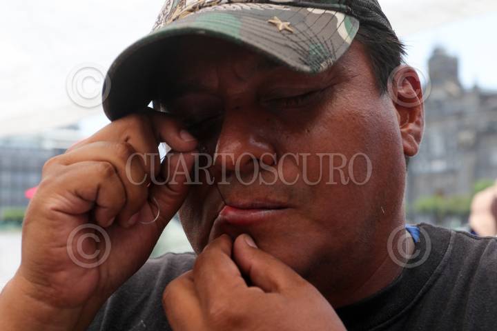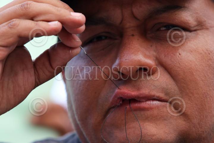 Antonio Fernández, comerciante de chacharas, se cosió el lado derecho de labio como protesta para exigir apoyo y respuesta de las autoridades del gobierno