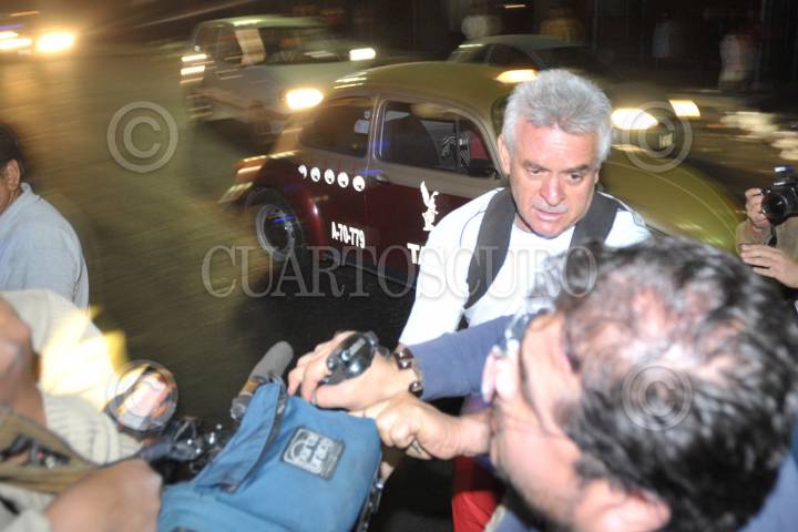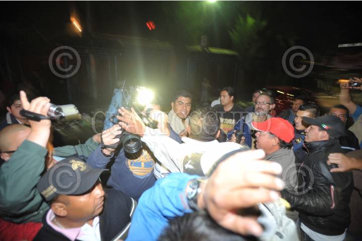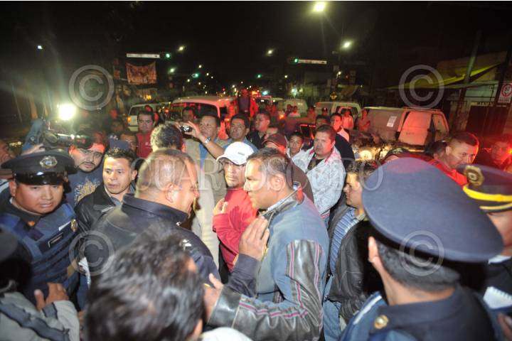 MÉXICO, D.F., 16MARZO2010.- Durante la madrugada se suscitó un accidente vehicular sobre el eje 1 Norte y la calle de Manuel Doblado en la zona de Tepito; este hecho terminó en un pleito contra los medios de comunicación, donde personal de la Vía Pública de la delegación Cuauhtémoc golpearon a fotógrafos y camarógrafos para evitar la labor periodística. FOTO: LUZ ACEVEDO/CUARTOSCURO.COM