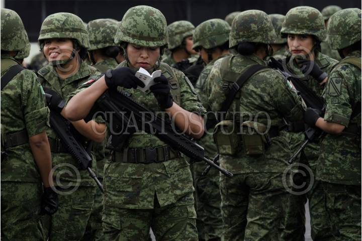 CIUDAD DE MÉXICO, 25JUNIO2019.- Se llevó a cabo la ceremonia de Entrega de las Cédulas de Acreditación de Entidad de Evaluación y Certificación de Competencias Laborales, con la que la SEDENA al estar en el Sistema Nacional de Competencias podrá evaluar y acreditar la competencia laboral del personal militar. En la imagen, una mujer militar lee un manual previo al inicio de la ceremonia. FOTO: MARIO JASSO /CUARTOSCURO.COM