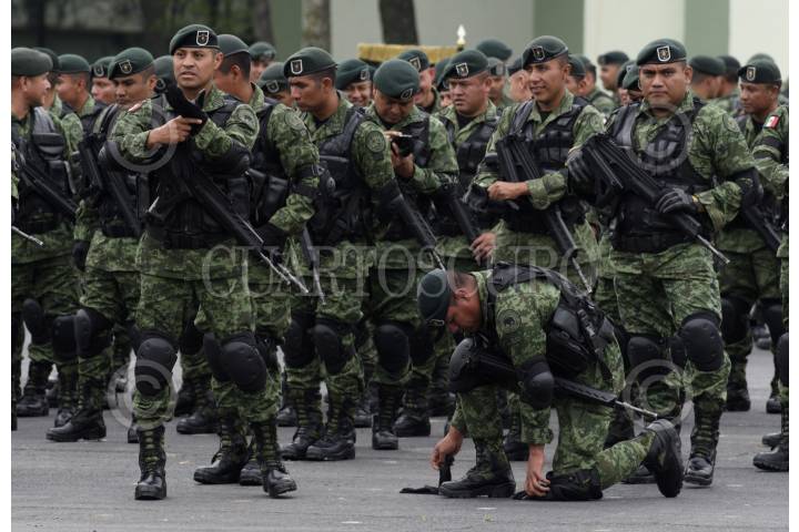 CIUDAD DE MÉXICO, 25JUNIO2019.- Se llevó a cabo la ceremonia de Entrega de las Cédulas de Acreditación de Entidad de Evaluación y Certificación de Competencias Laborales, con la que la SEDENA al estar en el Sistema Nacional de Competencias podrá evaluar y acreditar la competencia laboral del personal militar. En la imagen, un elemento del ejército bolea sus zapatos previo al inicio de la ceremonia. FOTO: MARIO JASSO /CUARTOSCURO.COM