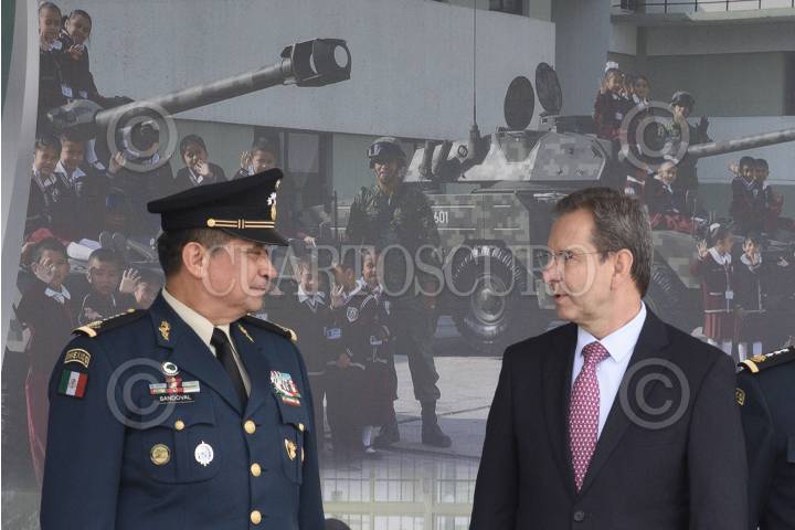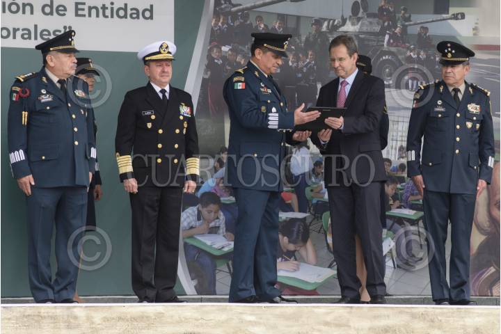 CIUDAD DE MÉXICO, 25JUNIO2019.- Luis Cresencio Sandoval, secretario de la Defensa Nacional, y Esteban Moctezuma Barragán, secretario de Educación Pública, encabezaron la ceremonia de Entrega de las Cédulas de Acreditación de Entidad de Evaluación y Certificación de Competencias Laborales, con la que la SEDENA al estar en el Sistema Nacional de Competencias podrá evaluar y acreditar la competencia laboral del personal militar. FOTO: MARIO JASSO /CUARTOSCURO.COM
