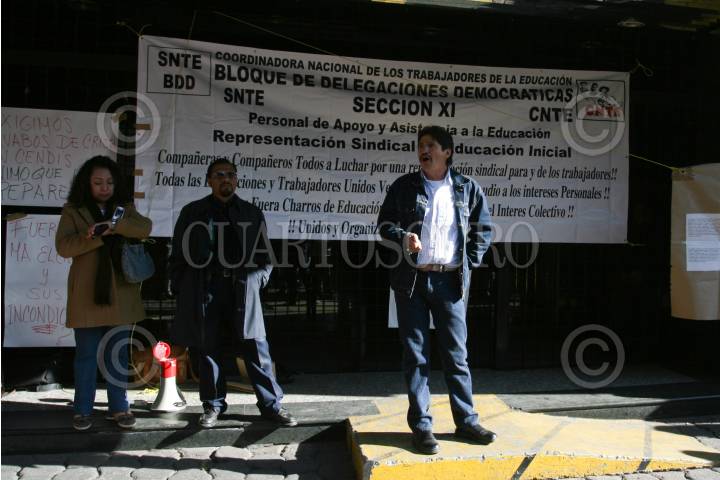 MÉXICO D.F., 25FEBRERO2009.- Empleados de la SEP, que laboran en los diversos Centros de Desarrollo Infantil (CENDI) protestaron a las afueras de las instalaciones de la secretaria de educación ubicadas en la calle de Izazaga # 38 colonia Centro, exigiendo la destitución de María Elena Pineda Carrillo, Directora de Educación Inicial. FOTO: GUILLERMO PEREA/CUARTOSCURO.COM