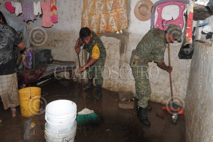 ACAPULCO, GUERRERO, 31AGOSTO2010.- Las lluvias registradas en las últimas horas dejaron más de 500 familias en refugios temporales en cuatro municipios y diez colonias del puerto, viviendas inundadas, desbordamiento de ríos, escuelas inundadas, cortes de caminos y carros atrapados por derrumbes. FOTOS: BERNANDINO HERNANDEZ/CUARTOSCURO.COM