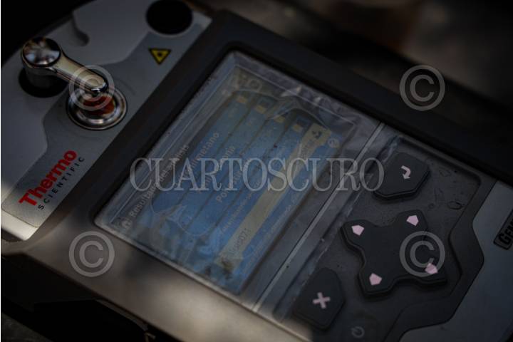 CULIACÁN, SINALOA, 19JUNIO2025.- Personal del Ejército Mexicano utilizó un aparato especializado para medir la concentración de sustancias químicas en uno de los laboratorios para elaboración de metanfetaminas asegurados en la sierra de Culiacán. El dispositivo fue empleado durante la inspección de los contenedores hallados en la zona. FOTO: JOSÉ BETANZOS ZÁRATE/CUARTOSCURO.COM