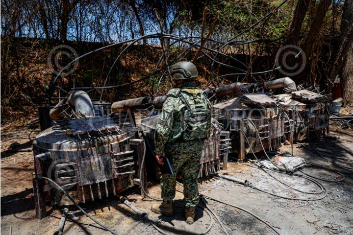 EL DORADO, SINALOA, 22JULIO2024.- La Secretaría de Marina a través de la Armada de México Informó que, en días pasados, personal naval en coadyuvancia con la Fiscalía General de la República (FGR), localizó, neutralizó y desmanteló un laboratorio clandestino, presuntamente empleado para la elaboración de drogas sintéticas, en inmediaciones del poblado “El Dorado”, en el estado de Sinaloa; siendo éste el segundo más grande de Semar, en lo que va del sexenio. FOTO: SEMAR/CUARTOSCURO.COM