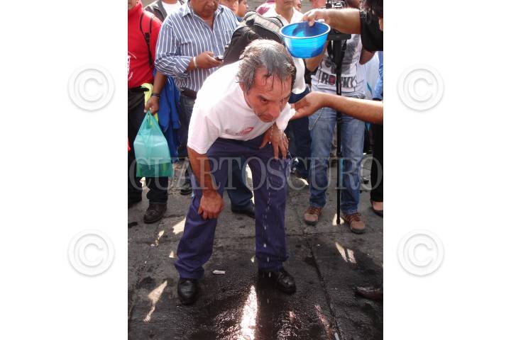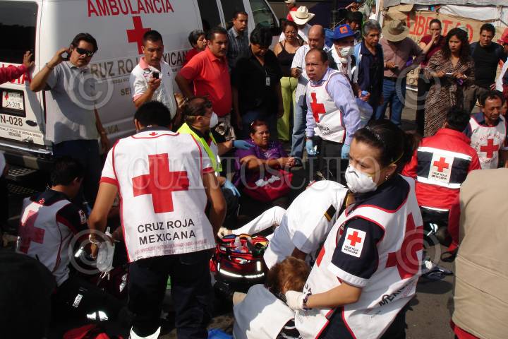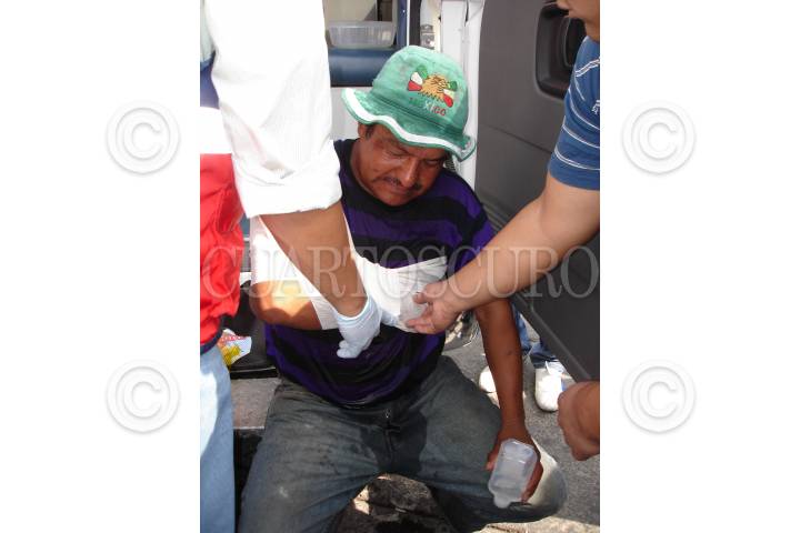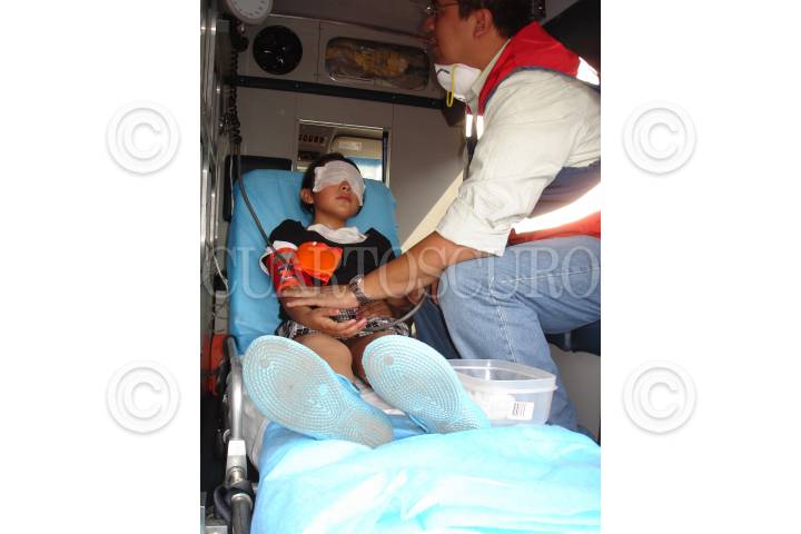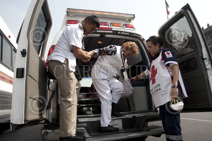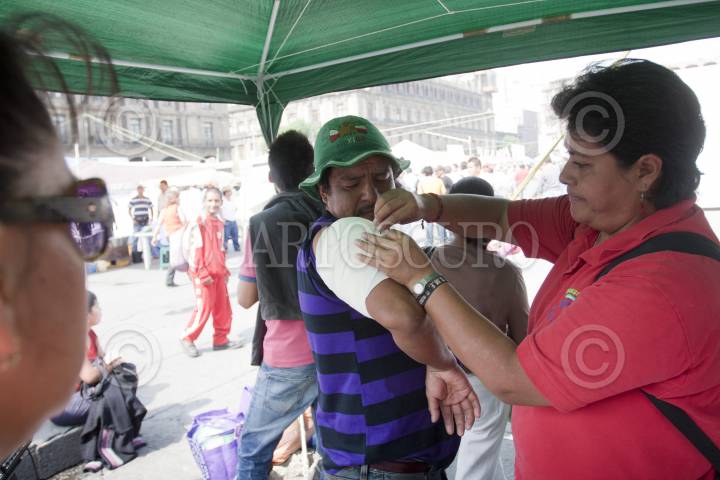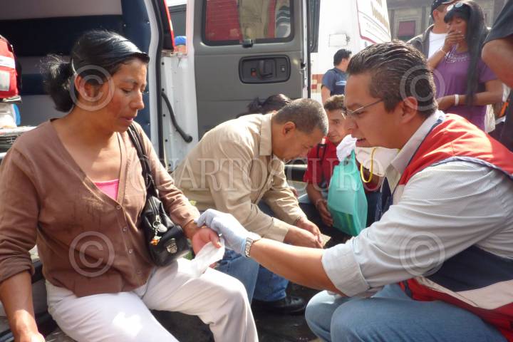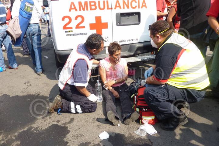 MÉXICO D.F., 11ABRIL2010.- Una persona es atendida después de los hechos ocurridos en la estación de metro Zócalo, donde fueron lanzadas granadas de gas lacrimógeno, supuestamente por elementos de la policía federal que reguarda los recintos aledaños a la plancha del Zócalo, donde se encuentra un plantón de integrantes del SME. FOTO: GUILLERMO PEREA/CUARTOSCURO.COM