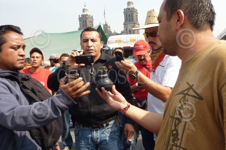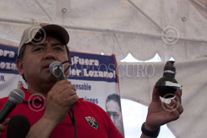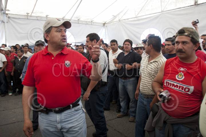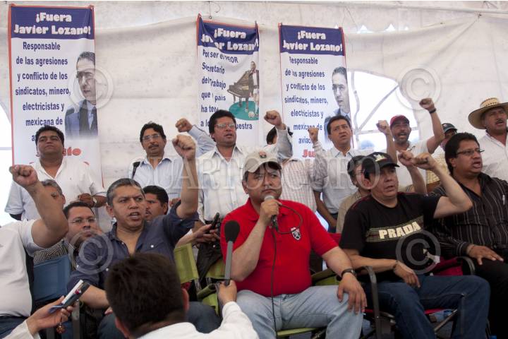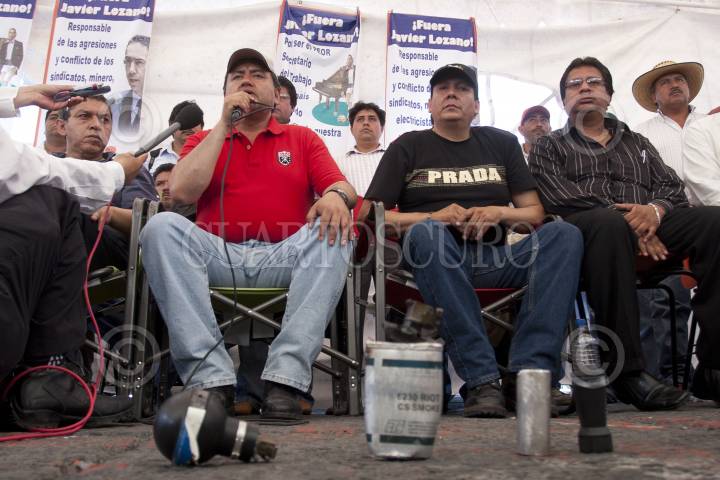 MÉXICO D.F., 11ABRIL2010.- Martín Esparza, Secretario Genral del Sindicato Mexicano de Electricistas (SME) ofreció una conferencia a los medios de comunicación donde dio a conocer que no fueron integrantes de esta organización los que lanzaron las granadas de gas lacrimógeno en el Metro Zócalo, sino que fueron integrantes de la Policía Federal y también deslindó a los electricistas de haber incendiado 4 vehículos de particulares, y de las agresiones que recibieron miembros de la prensa y de los hechos de violencia sucedidos en la movilización de esta mañana, pues según comentó se trata de filtrados. FOTO: GUILLERMO PEREA/CUARTOSCURO.COM