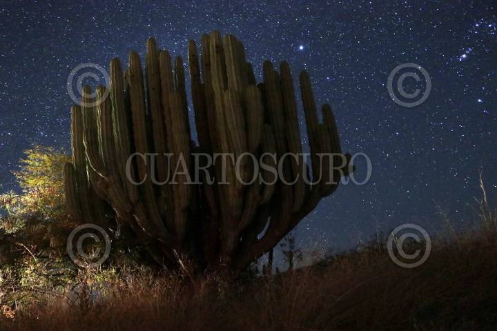 HUEHUETLÁN EL CHICO, PUEBLA, 28NOVIEMBRE2019.- En el primer plano un órgano de mezcala y detrás el cielo estrellado de la madrugada en la Sierra Mixteca. FOTO: MARGARITO PÉREZ RETANA /CUARTOSCURO.COM