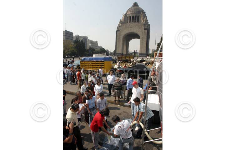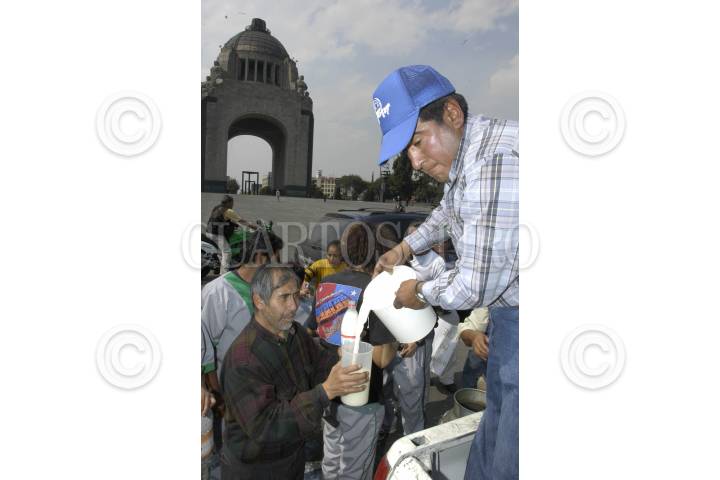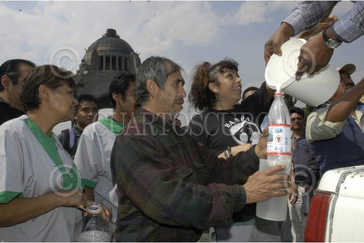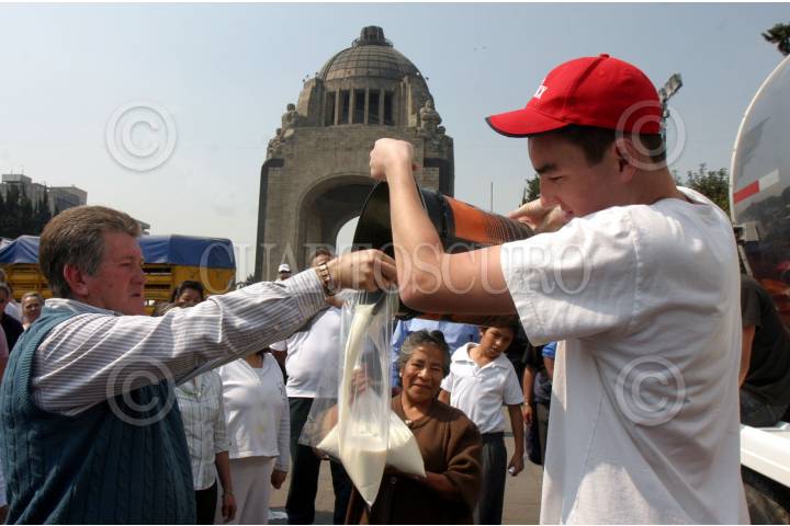 MÉXICO, D.F., 09FEBRERO2007.- Productores de leche regalaron su producto esta tarde frente al Monumento a la Revolución, para protestar en contra del gobierno federal que según ellos se niega a comprarles su producto. FOTO: FERNANDO GARCÍA/CUARTOSCURO.COM