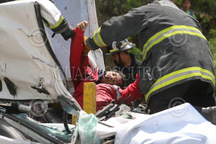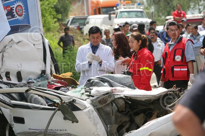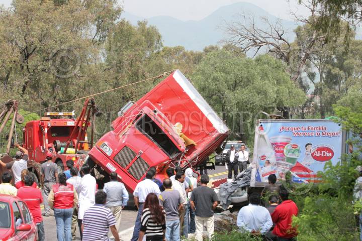 IXTAPALUCA, ESTADO DE MÉXICO, 05AGOSTO2010.- Un trabajador de una empresa de lácteos, perdió la vida después que un trailer volcara sobre la unidad en que viajaba en el kilómetro 32 de la carretera federal, México-Puebla. FOTO: SAÚL LÓPEZ/CUARTOSCURO.COM