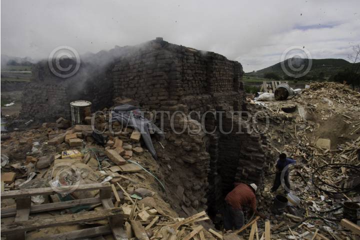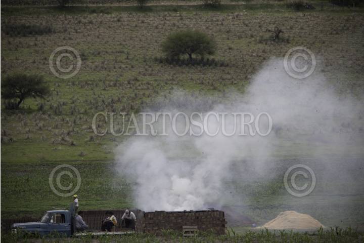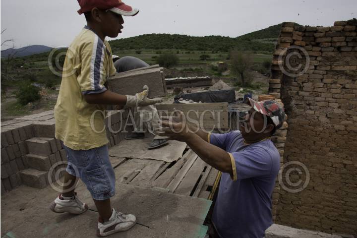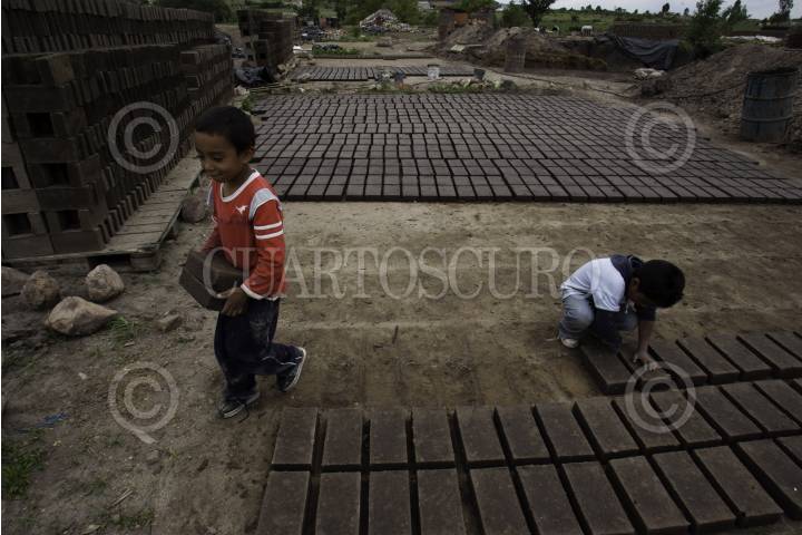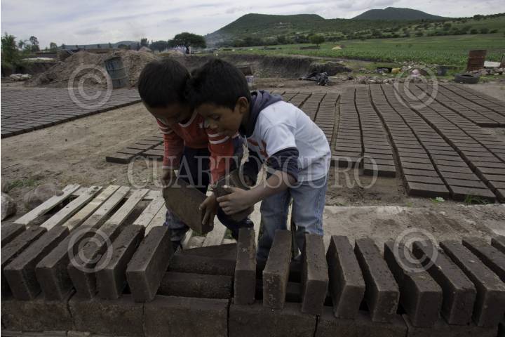 QUERÉTARO, QUERÉTARO, 13AGOSTO2011.- En la comunidad de La Solana en la delegación de Santa Rosa Jáuregui, las familias recurren a la manufactura de ladrillos rojos con las antiguas técnicas del quemado en horno durante 20 horas continúas. Para mantener el fuego se utiliza aceite quemado y madera, anteriormente se utilizaban azcareles para la combustión del horno que generaban el triple de la contaminación del aire. Los integrantes de las familias se autoemplean en las labores del ladrillo, de esta forma los gastos en empleados disminuye y se incrementa un poco la ganancia en la venta de ladrillos. Los niños y adolescentes participan de manera activa en la fábrica. Esta comunidad vive además de la elaboración de ladrillos de la siembra de maíz. FOTO: DEMIAN CHÁVEZ/CUARTOSCURO.COM
