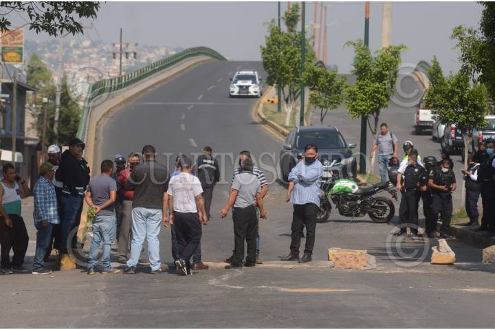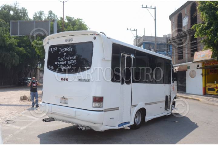 Protesta de choferes de microbus tras el asesinato de uno de sus compañeros.