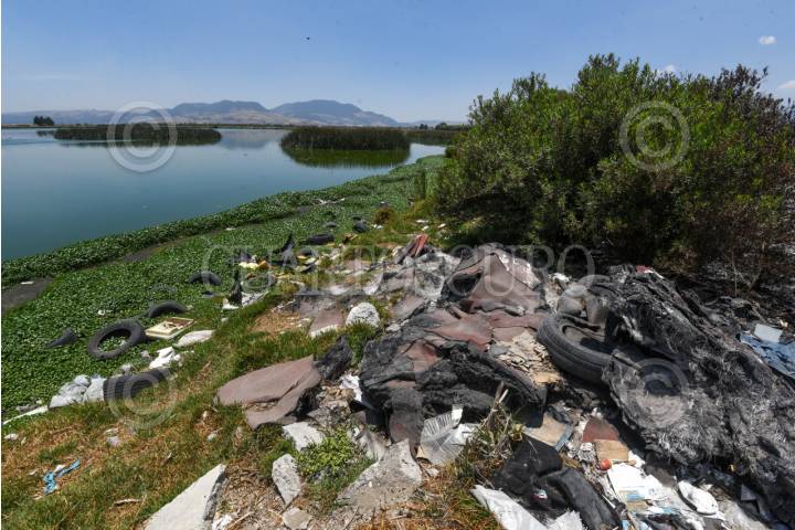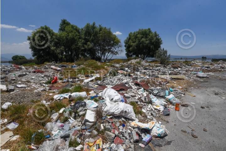 SAN ANTONIO LA ISLA, ESTADO DE MÉXICO, 05 JUNIO 2025.- Basura, cascajo, neumáticos y otros desechos se pueden observar en las orillas del Lago San Antonio La Isla, el cual es hogar de aves, reptiles y mamíferos. Este lugar ha sido utilizado por mucha gente como basurero. Vecinos de los fraccionamientos que se encuentran en la zona denuncian que hasta de otros municipios vienen a dejarles los residuos. Este 5 de junio es el Día Mundial del Medio Ambiente, el cual busca crear conciencia en la población sobre el cuidado del planeta en el que habitamos. FOTO: CRISANTA ESPINOSA AGUILAR /CUARTOSCURO.COM