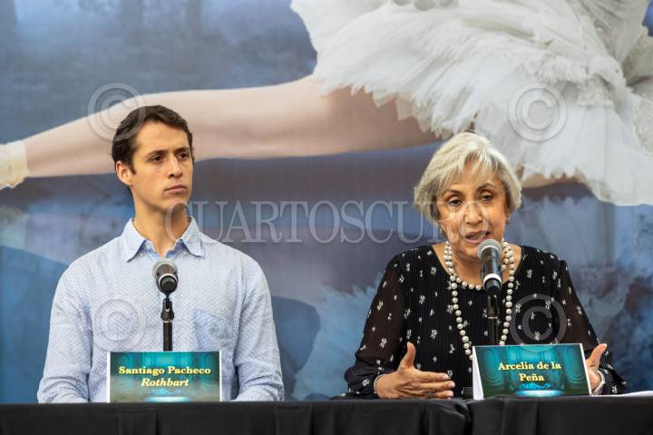 CIUDAD DE MÉXICO, 26MARZO2025.- Santiago Pacheco, bailarín; y Arcelia de la Peña, productora y coreógrafa; durante la presentación de el "Lago de los Cines", este clásico mundial de ballet, será presentado una única función el 18 de Mayo en el Auditorio Nacional. La productora señala que este montaje busca acerca al ballet a otros públicos, ya que en esta ocasión contará con la voz de un narrador quien contará la trama de esta obra original de Tchaikovsky.. FOTO: MOISÉS PABLO/CUARTOSCURO.COM