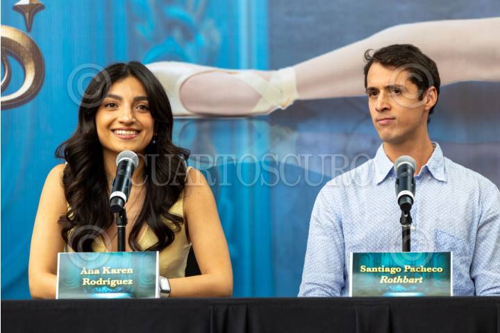 CIUDAD DE MÉXICO, 26MARZO2025.- Ana Karen Rodríguez, bailarina; y Santiago Pacheco, bailarín; durante la presentación de el "Lago de los Cines", este clásico mundial de ballet será presentado en una única función el 18 de Mayo en el Auditoria Nacional. La productora señala que este montaje busca acerca al ballet a otros públicos, ya que en esta ocasión contará con la voz de un narrador quien contará la trama de esta obra original de Tchaikovsky. FOTO: MOISÉS PABLO/CUARTOSCURO.COM