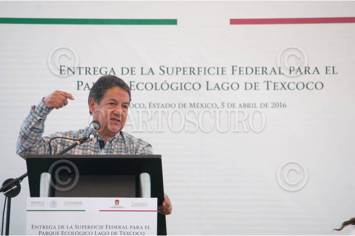 TEXCOCO, ESTADO DE MÉXICO, 05ABRIL2016.- Roberto Ramírez de la Parra, director de CONAGUA, entregó a Higinio Martínez Miranda, presidente municipal de Texcoco, la superficie federal del parque ecológico del Lago de Texcoco, los cuales ahora serán administrados por el gobierno municipal; las instalaciones deportivas y recreativas serán abiertas al público en general. FOTO: DIEGO SIMÓN SÁNCHEZ /CUARTOSCURO.COM