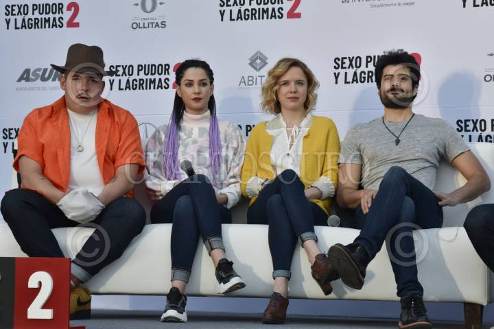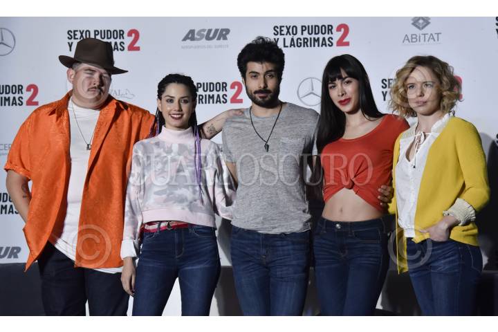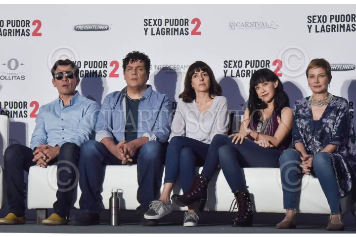 José Ángel Bichir, Naian González Norvind, Ximena Romo, Paco Rueda y Victoria Volkoba, durante la presentación de la película Sexo Pudor y Lágrimas 2.