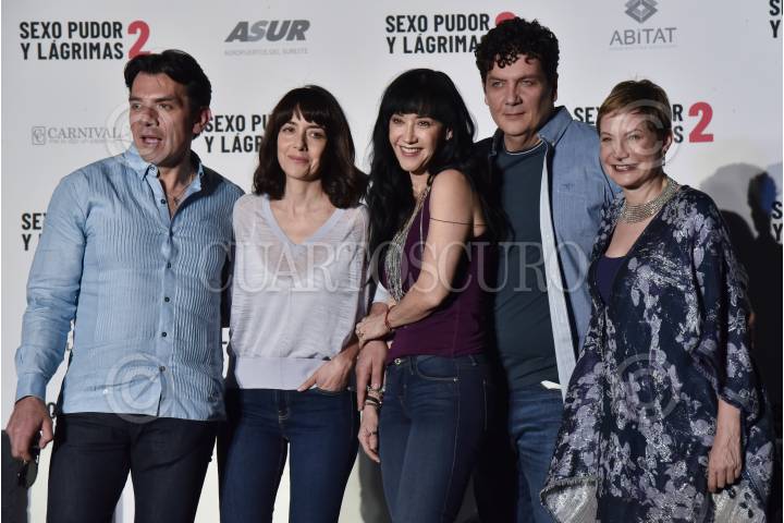 Cecilia Suárez, Jorge Salinas, Susana Zabaleta, Mónica Dionne y Víctor Huggo Martín, durante la presentación de la película Sexo Pudor y Lágrimas 2.