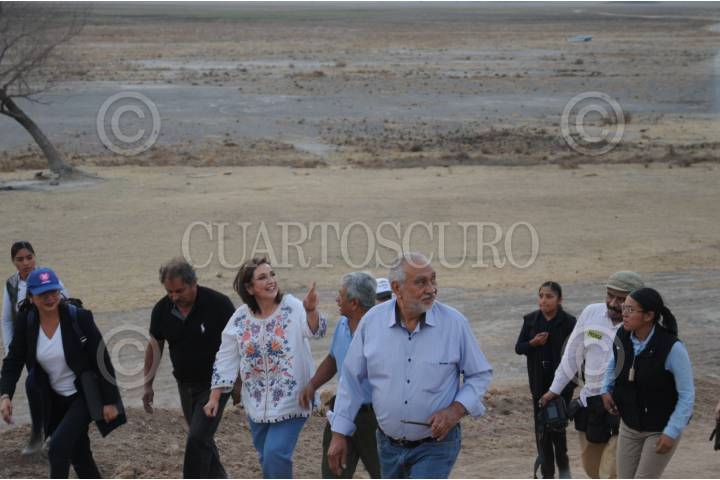 ZUMPANGO, EDOMEX, 02ABRIL2024.- Xóchitl Gálvez, candidata presidencial de la coalición Fuerza y Corazón por México, recorrió la Laguna de Zumpango la cual se encuentra seca. FOTO: DANIEL AUGUSTO /CUARTOSCURO.COM