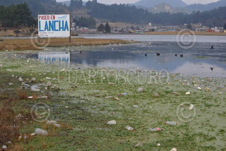 OCOYOACAC, ESTADO DE MÉXICO, 05ENERO2018.- Uno de los problemas los que se enfrentan los ejidatarios de Salazar es la basura que dejan los visitantes en la zona de la Marquesa, tal es el caso de la Laguna de Salazar en la cual se puede observar basura y lirio, dando un mal aspecto al lugar. FOTO: ARTEMIO GUERRA BAZ /CUARTOSCURO.COM