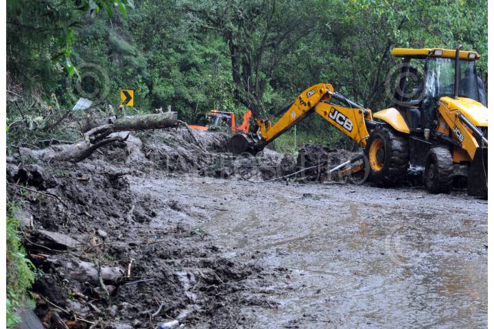 HUITZILAC MORELOS, 30SEPTIEMBRE2019.- Los efectos de la tormenta tropical Narda se han sentido en el estado de Morelos. Aproximadamente a las diez de la noche de ayer un deslave se registró en la carretera Huitzilac-Santa Martha, a la altura de las lagunas de Zempoala. Las piedras y tierra cerraron la arteria, Protección Civil se encarga de remover los escombros y se espera que por la tarde sea abierta la circulación. FOTO: ESPECIAL /CUARTOSCURO.COM
