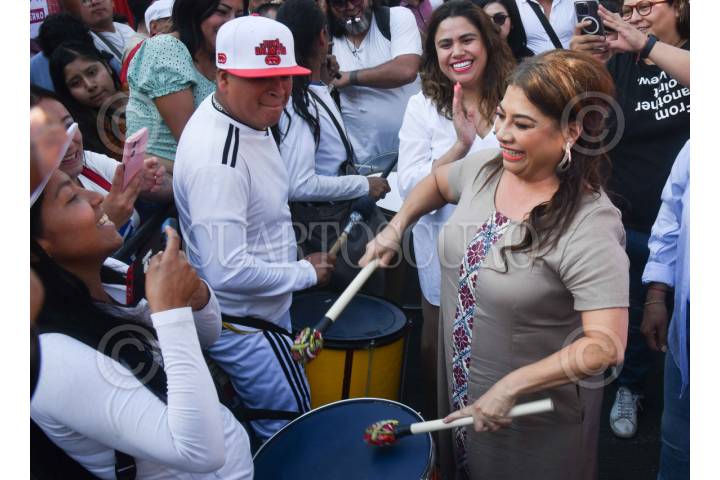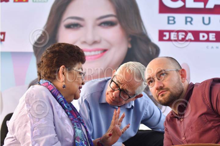 CIUDAD DE MÉXICO, 23MARZO2024.- Ernestina Godoy, candidata a senadora de la República; Jorge Gaviño, y Temístocles Villanueva, diputados del Congreso Local, durante el mitin de Clara Brugada, candidata a la Jefatura de Gobierno por la coalición Sigamos Haciendo Historia, con vecinos de la Lagunilla en la colonia centro en donde compartió sus propuestas de gobierno. FOTO: MARIO JASSO/CUARTOSCURO.COM