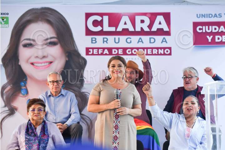 CIUDAD DE MÉXICO, 18ABRIL2024.- Clara Brugada, candidata a la Jefatura de Gobierno por la coalición Sigamos Haciendo Historia, encabezó una asamblea informativa para compartir sus propuestas de campaña con vecinos de la Magdalena Mixihuca. FOTO: MARIO JASSO/CUARTOSCURO.COM