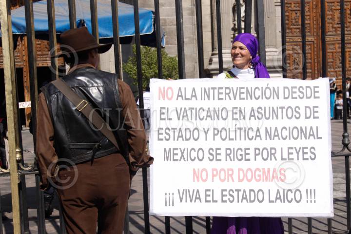 MÉXICO, D.F., 02ENERO2011.- Una activista se manifestó frente a la Catedral Metropolitana a favor de la laicidad del Estado mexicano. FOTO: IVÁN STEPHENS/CUARTOSCURO.COM