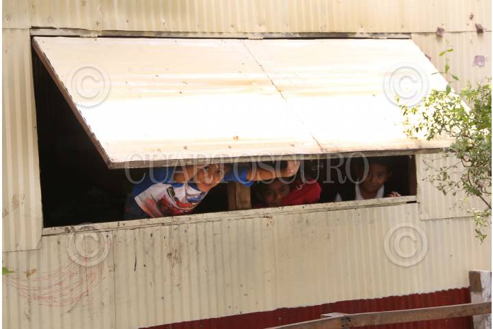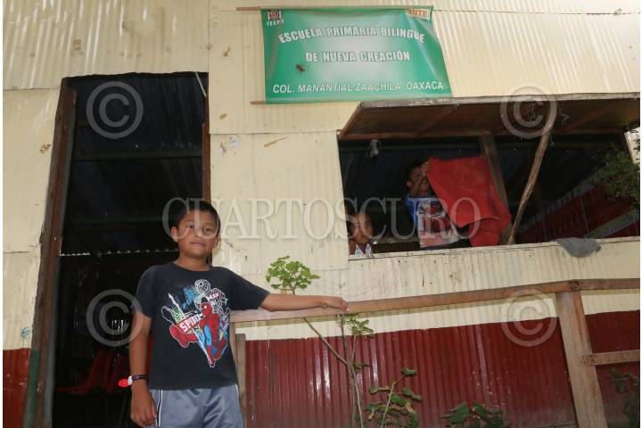 VILLA DE ZAACHILA, OAXACA, 26AGOSTO2015.- La escuela Primaria Bilingüe de Nueva Creación es un módulo que opera la sección 59 del Sindicato Nacional de los Trabajadores de la Educación (SNTE) en el municipio de la Villa de Zaachila, conurbado a la ciudad de Oaxaca y ubicado a 16 kilómetros del zócalo de la ciudad. En esta escuela hay solamente tres profesores que atienden a un aproximado de 90 alumnos, cada uno se encarga de dos grados, los salones son de lámina y madera, además de que los muebles son de segunda mano, ya que la mayoría son donados por algunas organizaciones o escuelas que los desechan, la desatención del gobierno del estado es tal que en los 3 años que llevan operando, no han recibido ni un solo centavo, todo lo que se ha logrado, ha sido gracias a los padres de familia quienes cooperan de manera constante para así poder mejorar las instalaciones. FOTO: ARTURO PÉREZ ALFONSO /CUARTOSCURO.COM