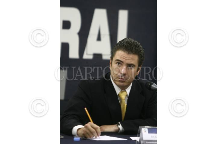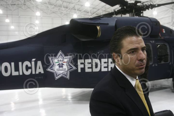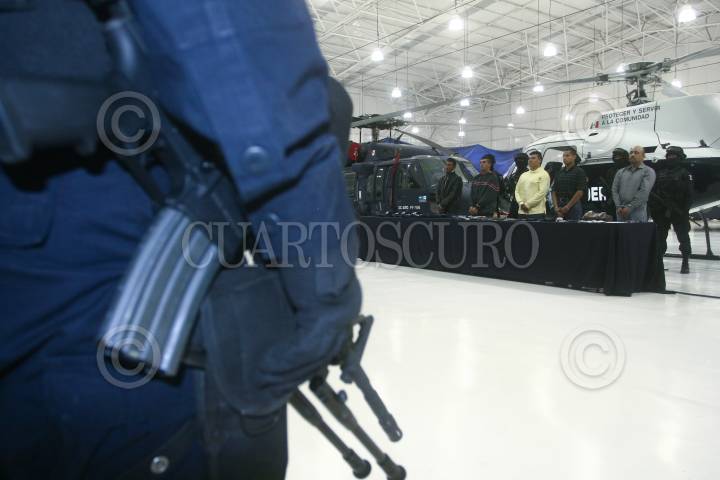 MÉXICO, D.F., 14MAYO2009.- Luis Cárdenas Palomino, Coordinador de Inteligencia para la Prevención de la PFP, presento ante los medios de comunicación a 5 personas detenidas presuntamente vinculadas con la banda de los "Lancheros" que operaban en el estado de Hidalgo y Veracruz, dicha banda criminal se dedicaba al secuestro y se encontraba aparentada con la organización criminal de los Zetas. FOTO: SAÚL LÓPEZ/CUARTOSCURO.COM
