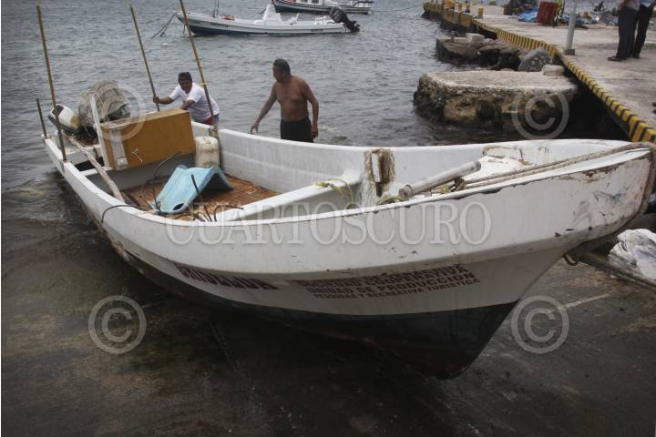 VERACRUZ, VERACRUZ., 08AGOSTO2012.- Pescadores y lancheros del puerto iniciaron el retiro de sus pequeñas embarcaciones debido al posible impacto del fenómeno meteorológico "Ernesto", el cual posiblemente ingrese la tarde de este jueves a territorio veracruzano. FOTO: FÉLIX MÁRQUEZ /CUARTOSCURO.COM